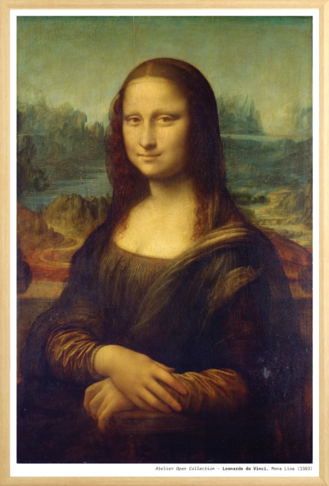 The Mona Lisa is one of the most celebrated portraits in the history of art, renowned for its soft sfumato modeling, serene expression, and harmonious balance. Painted by Leonardo da Vinci during the height of the Italian Renaissance, the work invites viewers into a quiet moment of poise and mystery. Its atmospheric landscape, delicate textures, and iconic smile make it a masterpiece admired for over 500 years. Printed in-house on museum-grade materials, this reproduction preserves the depth, warmth, and fine detail of Leonardo’s original vision.